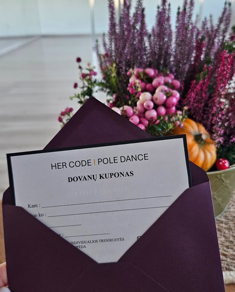 Dovanų kupono vertę galite rinktis pagal savo norus, o gavėjas galės panaudoti kuponą bet kuriai mūsų siūlomai paslaugai – nuo pole dance treniruočių iki individualių užsiėmimų.